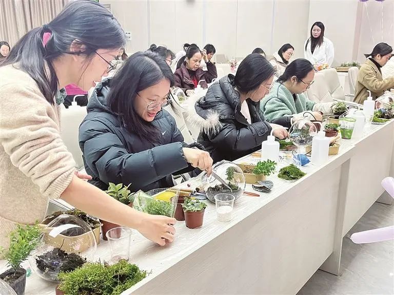 “哪種晾衣方式最節(jié)省烘干機電能?”“哪種取暖方式最環(huán)保?”活動現場,市氣象局結合自身工作特色,設置“生態(tài)環(huán)?!薄熬G色生活”方面問答題,開展知識問答互動,宣傳生態(tài)環(huán)保理念,倡導文明綠色生活。隨后現場還進行了微景觀玻璃缸制作環(huán)節(jié),工作人員發(fā)揮創(chuàng)意,在玻璃缸內搭配水苔、網紋草等植物,制作成一個個獨特的微景觀。