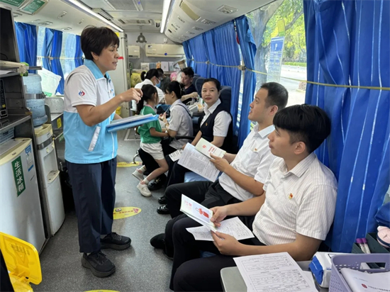 潘燕芬在獻(xiàn)血車(chē)上宣講