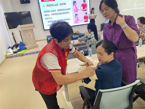 潘燕芬在柳州市女企業(yè)家協(xié)會(huì)進(jìn)行創(chuàng)傷救護(hù)培訓(xùn)