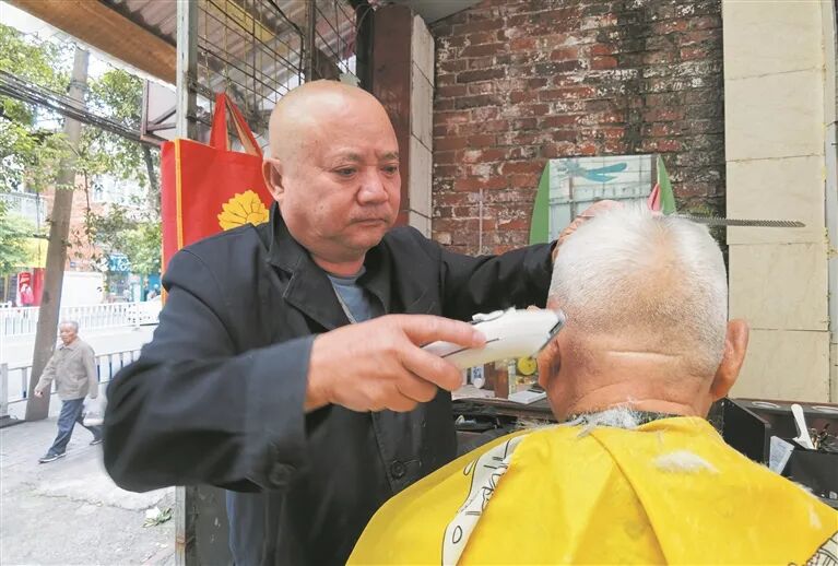 “老人家都喜歡早起,為了方便他們理發(fā),我都是早上七八點就開門營業(yè)了?!毙爝x余說,說是開門營業(yè),其實很多時候是沒有收入的,因為來剪發(fā)的大部分是老人,有時一個早上少則三四名老人來理發(fā),多則五六人,都是免費的。