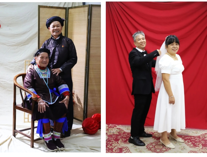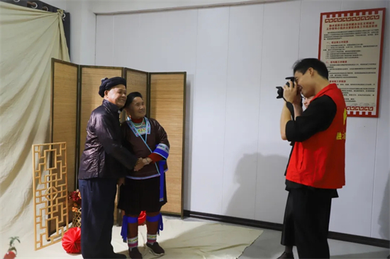 布景區(qū)也精心設(shè)計(jì)了溫馨場景,攝影師耐心指導(dǎo)老人們擺造型、做表情,從牽手凝望到并肩微笑,用鏡頭記錄下每一對參與者的美好瞬間。