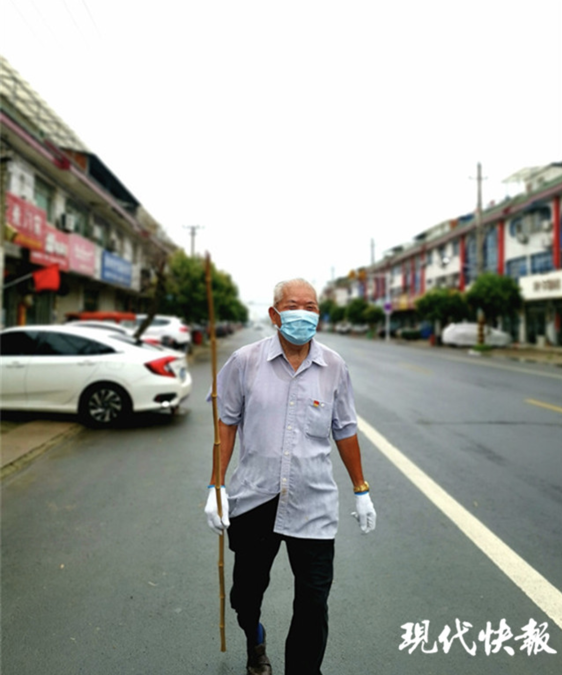 張老拿著竹竿出門。圖片來源:現(xiàn)代快報