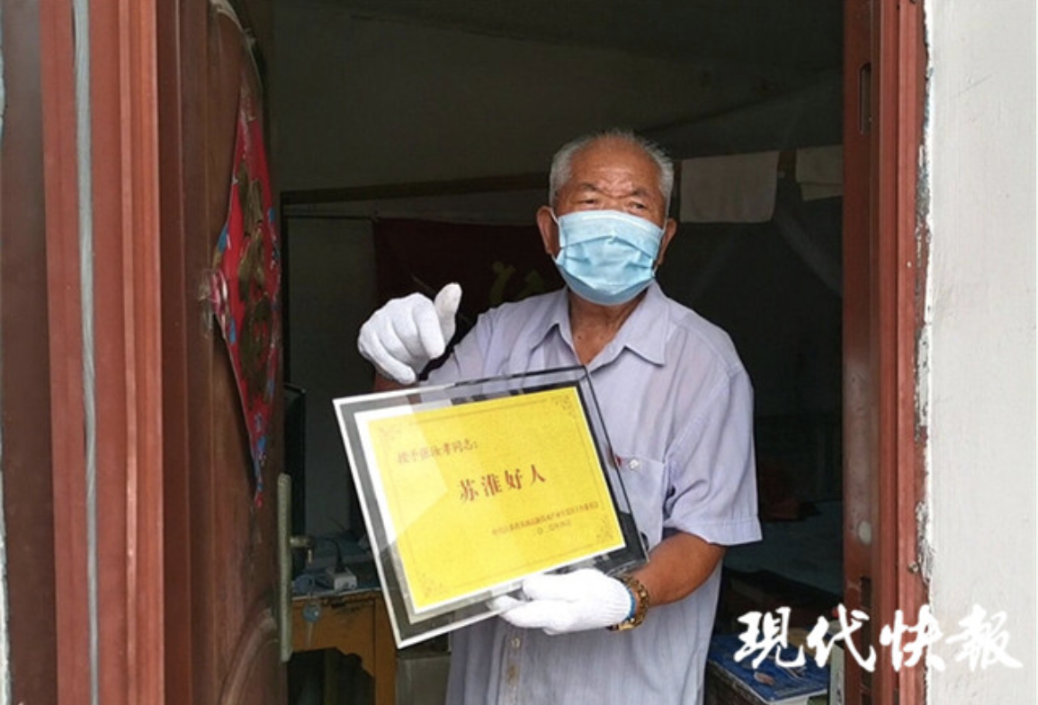 張老獲得“蘇淮好人”稱號。圖片來源:現(xiàn)代快報